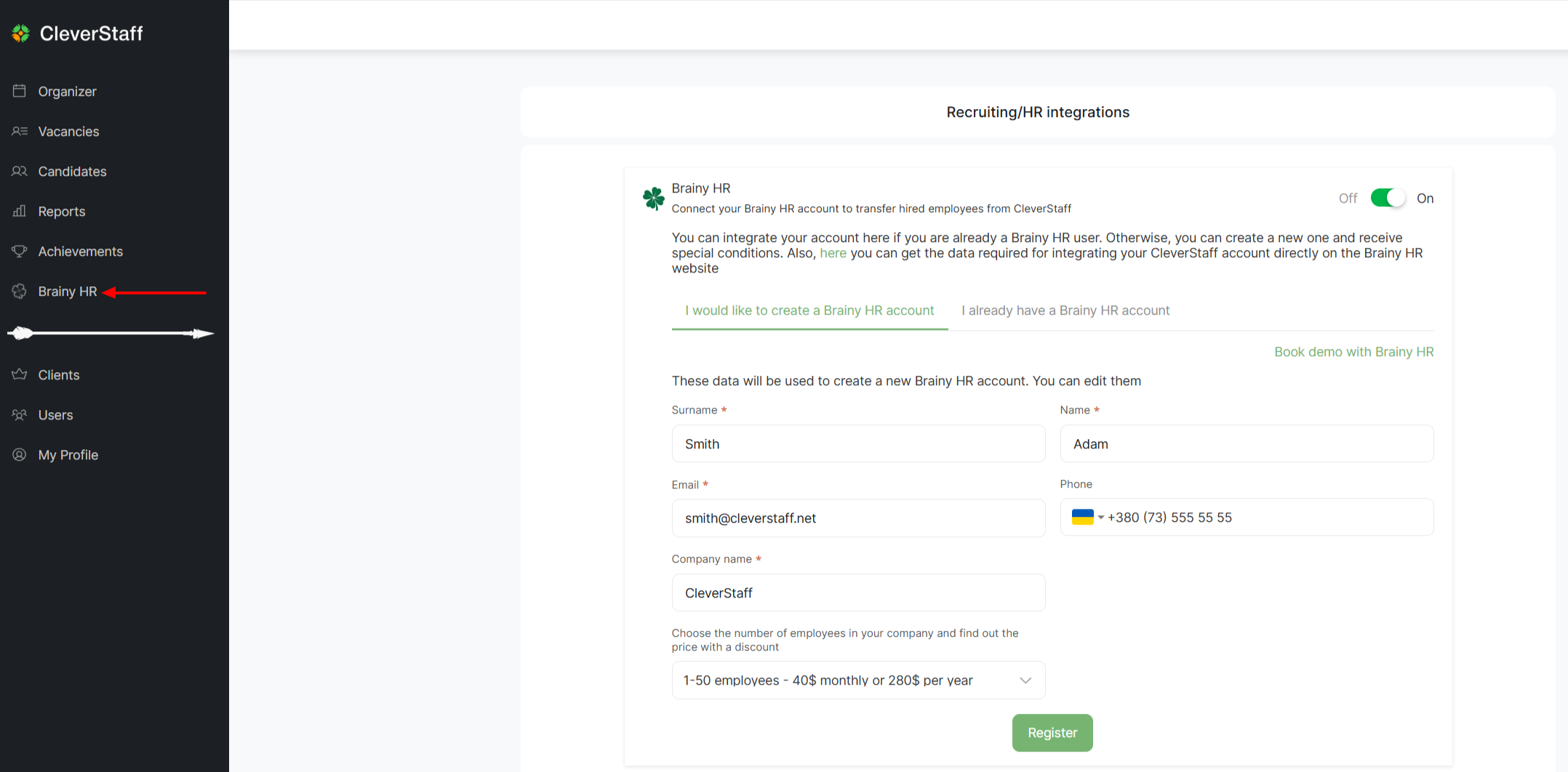 - Quick registration in Brainy HR directly from the CleverStaff account — saving time and streamlining workflows.