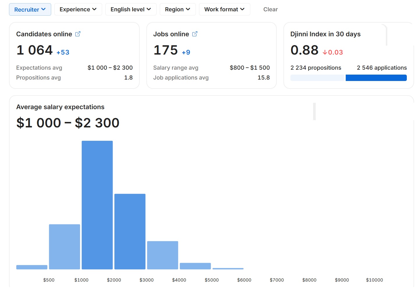 Newcomers to the field are attracted by its dynamism, development opportunities and salary growth. For example, according to Djinni data for 2024-2025, IT recruiters can earn between $1,000 and $2,300, while HRD remuneration can reach $4,000 and above.
