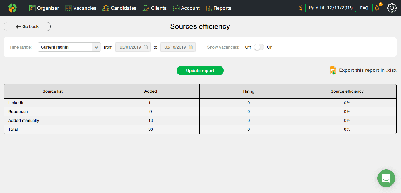 Как работает отчет “Эффективность источников кандидатов”