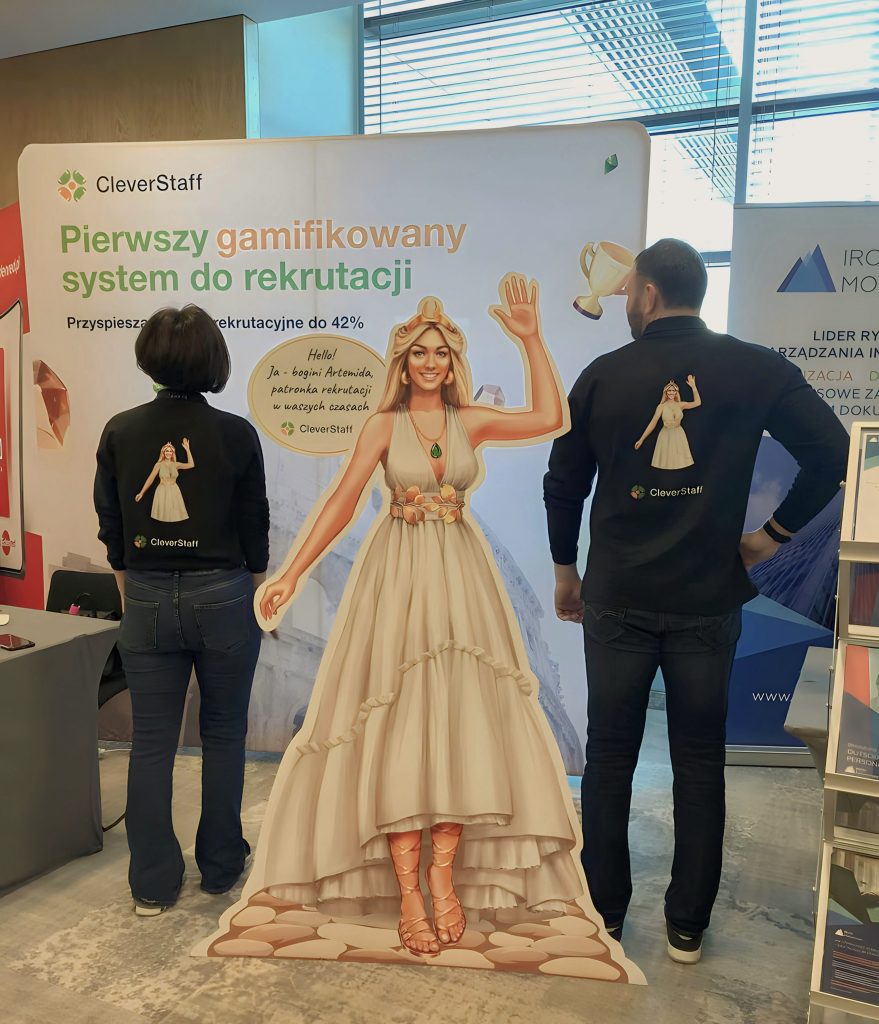 Główną atrakcją platformy prezentacyjnej CleverStaff była rozkoszna bogini Artemida – nowoczesna patronka rekrutacji, która jak magnes przyciągała uczestników wydarzenia. Zaobserwowano nawet „reakcję łańcuchową”: kiedy ludzie siedzieli przy stoisku z kawą i delektowali się smakołykami, nadal patrzyli na Artemidę – najpierw jeden uczestnik, później jego rozmówca i tak w kółko. Oczywiście podchodzono, poznawano się, robiono sobie zdjęcia. Nie sposób było nie zauważyć zgrabnej urody rekruterki, a co dopiero przejść obok niej bez zrobienia kilku zdjęć.
