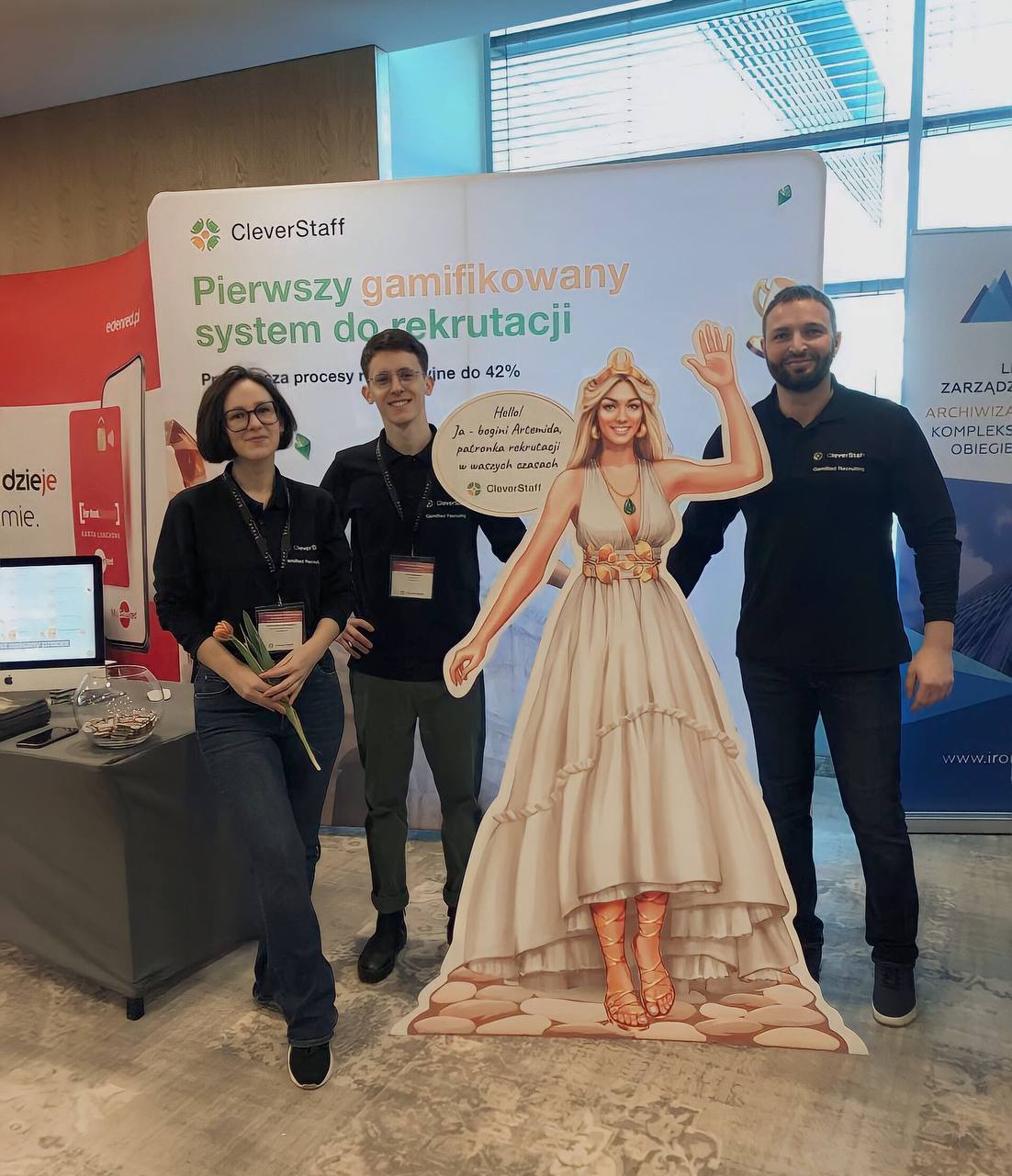 Główną atrakcją platformy prezentacyjnej CleverStaff była rozkoszna bogini Artemida – nowoczesna patronka rekrutacji, która jak magnes przyciągała uczestników wydarzenia. Zaobserwowano nawet „reakcję łańcuchową”: kiedy ludzie siedzieli przy stoisku z kawą i delektowali się smakołykami, nadal patrzyli na Artemidę – najpierw jeden uczestnik, później jego rozmówca i tak w kółko. Oczywiście podchodzono, poznawano się, robiono sobie zdjęcia. Nie sposób było nie zauważyć zgrabnej urody rekruterki, a co dopiero przejść obok niej bez zrobienia kilku zdjęć.