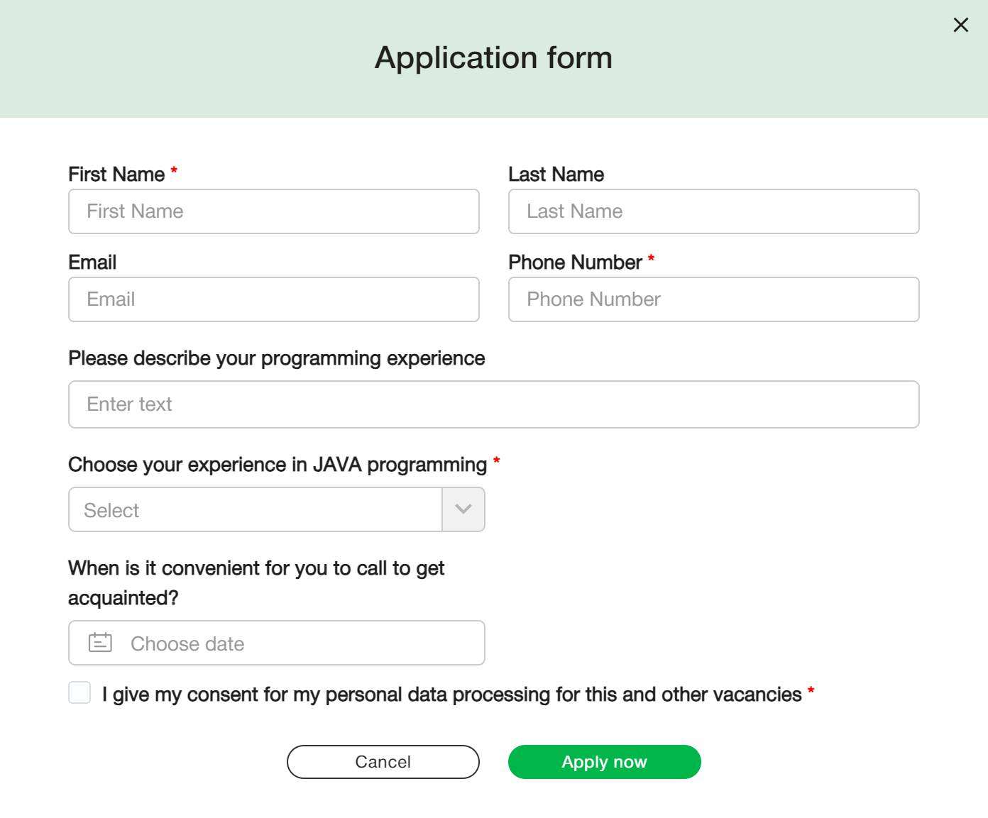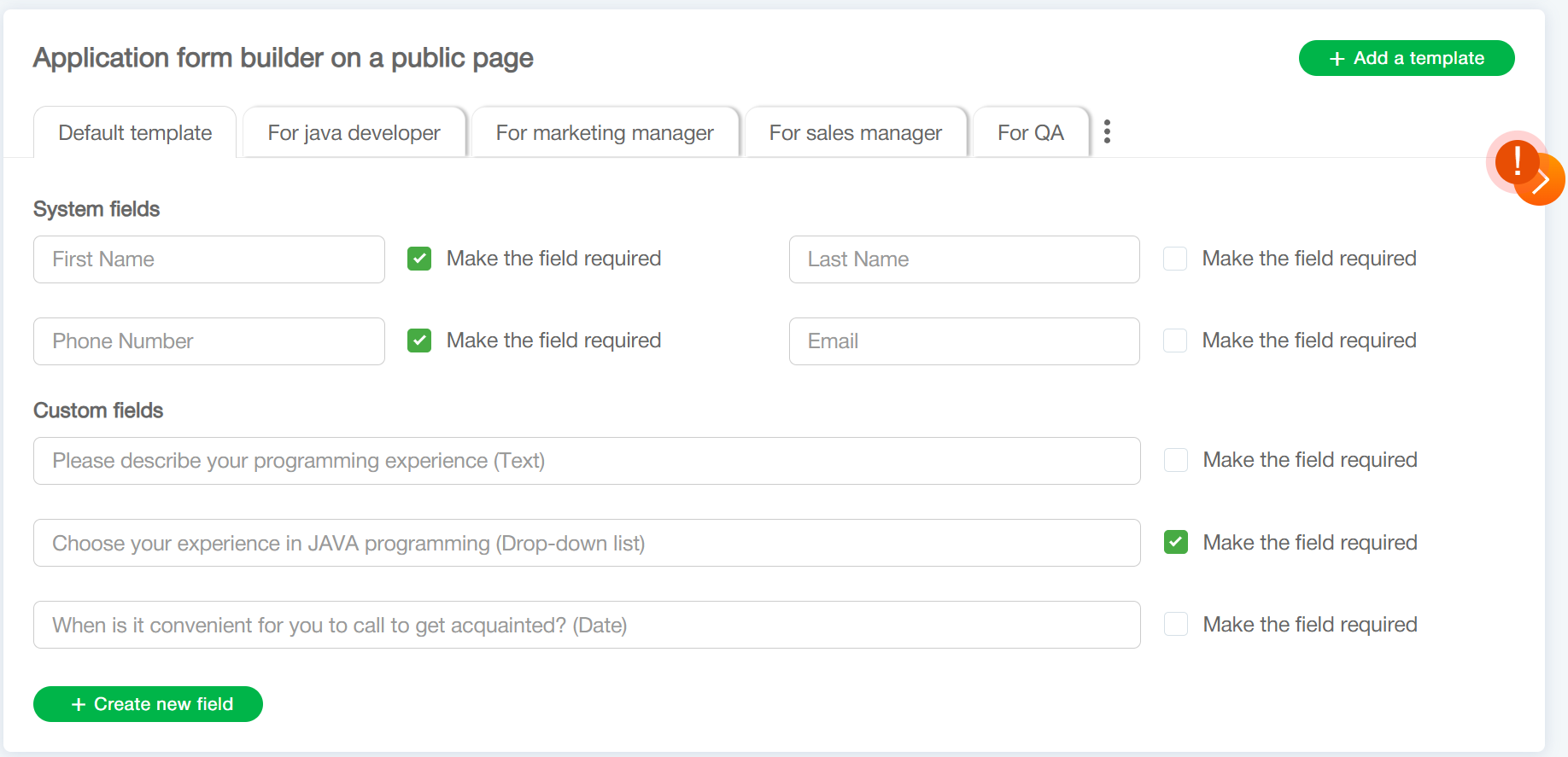 Podczas konfigurowania formularza opinii na swojej Strona Kariery z ofertami pracy można: