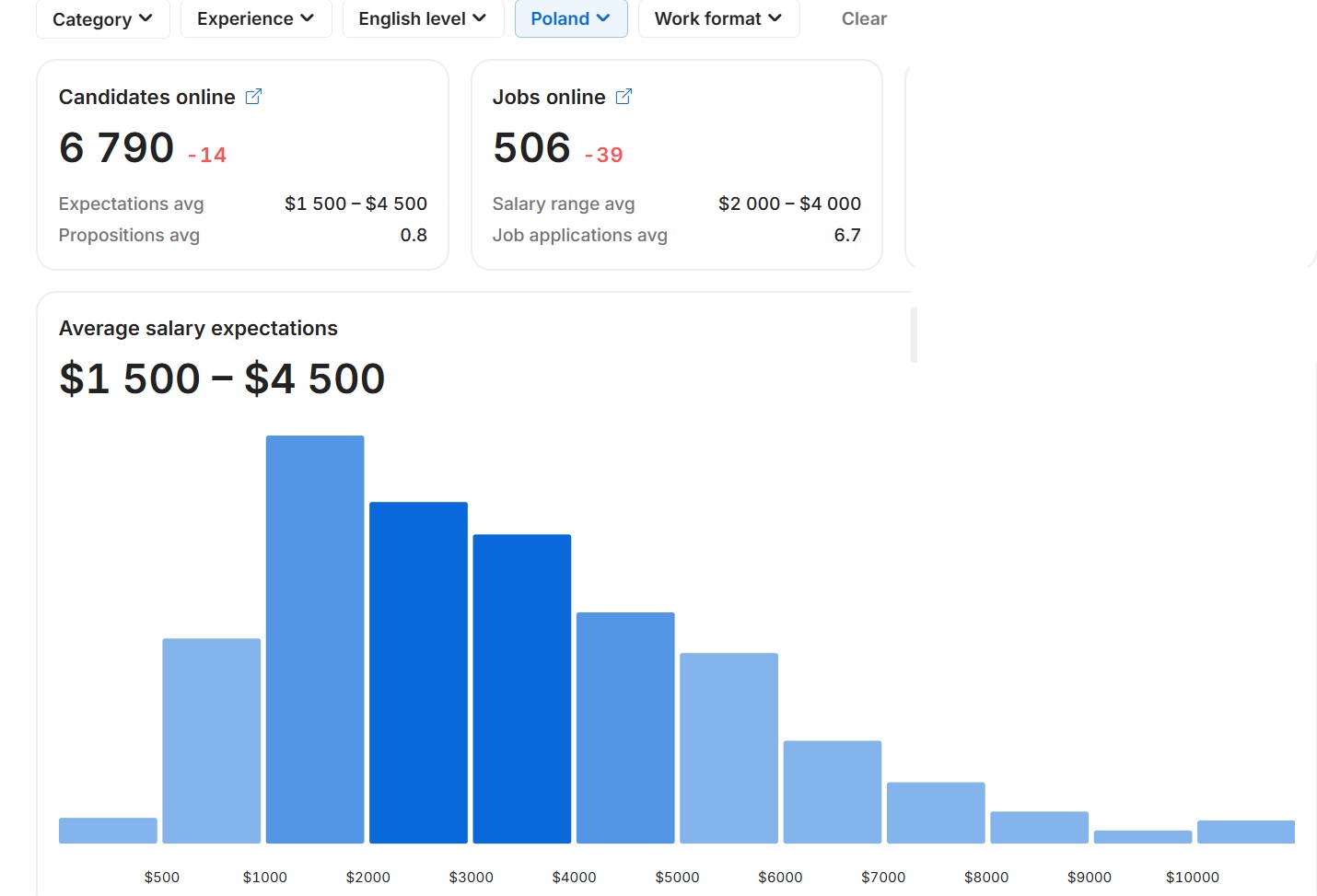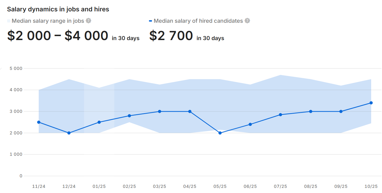 Jednym z najważniejszych pytań dla wszystkich, którzy interesują się takim tematem, jak rekrutacja w IT, jest to, ile zarabia rekruter IT. Nowicjuszy w tej branży przyciąga jej dynamiczność, możliwości rozwoju i dobrego wynagrodzenia. Na przykład, według danych Djinni za lata 2024-2025, w rekrutacji IT w Ukrainie można zarobić od 2000 do 4000 dolarów, a wynagrodzenie HRD może sięgać 4500 dolarów i więcej.