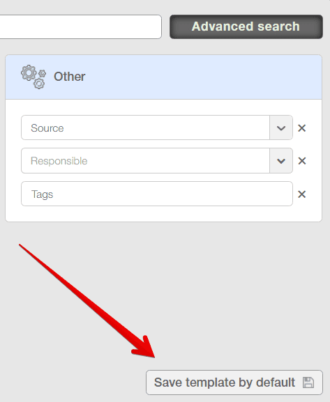Если вы часто используете поиск по определенной совокупности критериев, вы можете создать шаблон расширенного поиска. Чтобы не настраивать критерии поиска каждый раз, вы можете однократно установить их и нажать на кнопку «Сохранить шаблон по умолчанию». Все выбранные параметры будут отображаться каждый раз при расширенном поиске.