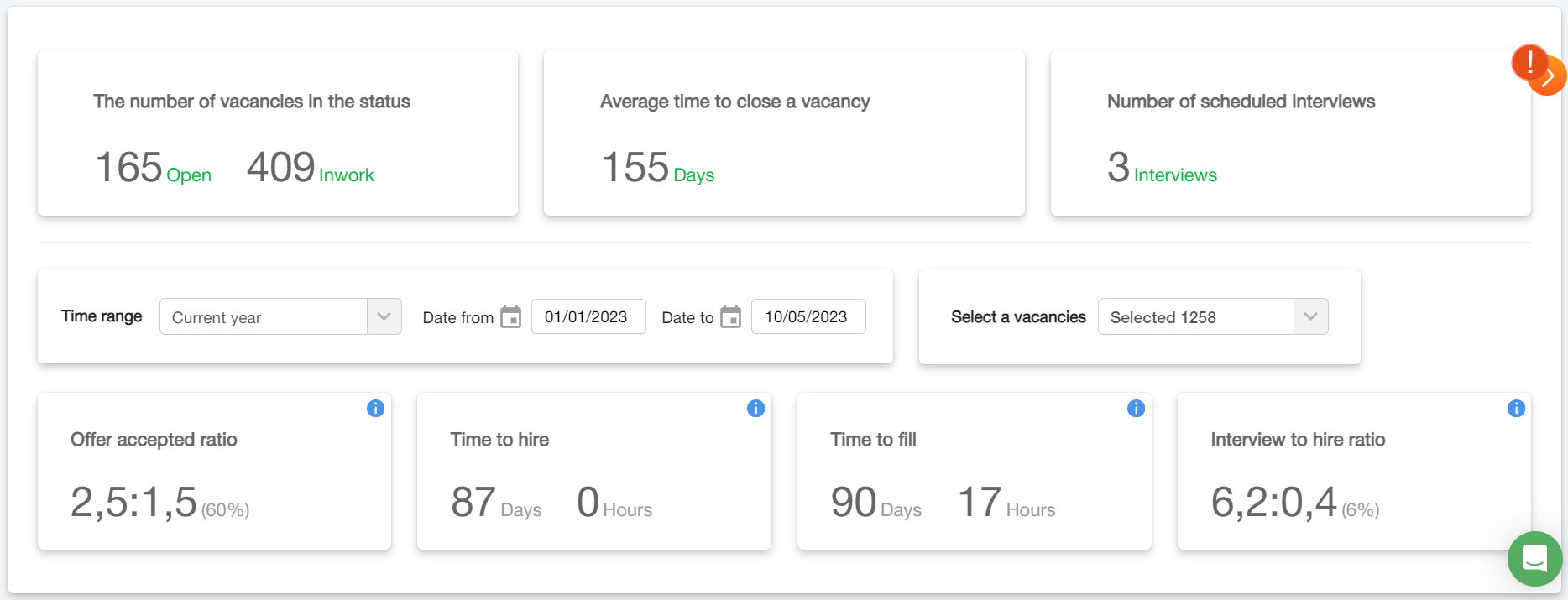 В нижній частині розташовані показники, до яких можна застосовувати часовий фільтр і фільтр за вакансіями. Більш докладно про дашборд можна почитати тут.
