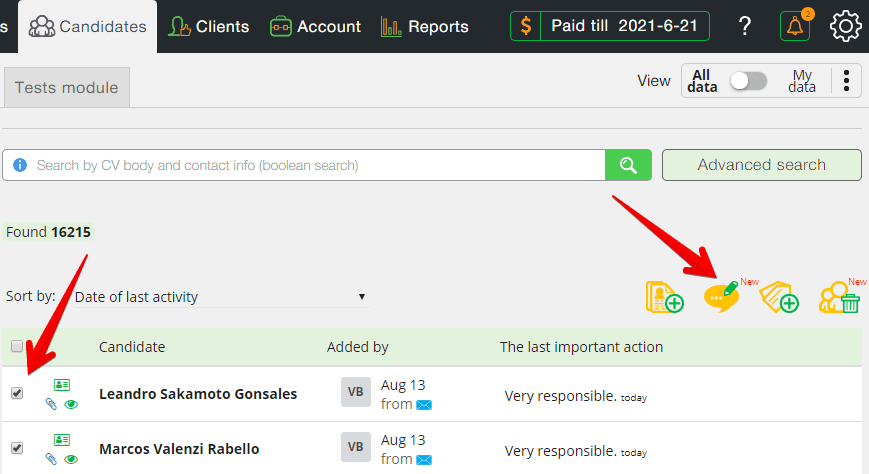 Бывает, что вы случайно добавили кандидата в базу и забыли удалить его. Теперь, чтобы «навести порядок» в своей базе, вам понадобится совсем немного времени, ведь по запросу Genadiusz Pysanka из компании SBT Systems мы реализовали возможность массового удаления кандидатов.