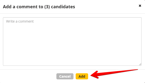 Чтобы добавить комментарии сразу для нескольких кандидатов, откройте вкладку «Кандидаты» – выберите нужных кандидатов – кликните кнопку добавления комментариев, как показано на скриншоте: