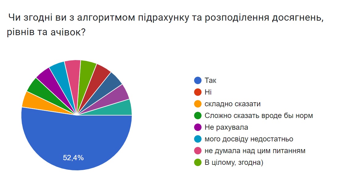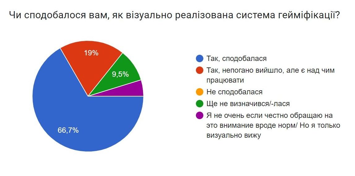 Йдемо далі. З приводу того, чи сподобалося, як візуалізована гейміфікація, думки розподілилися наступним чином 👇