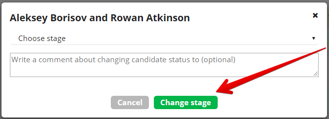 Потім виберіть етап, на який необхідно перевести кандидатів.