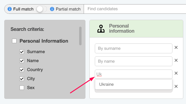 - У розширеному пошуку кандидатів до поля «Локація» додали пошук. Тепер не потрібно скролити весь список, щоб знайти потрібний вам регіон